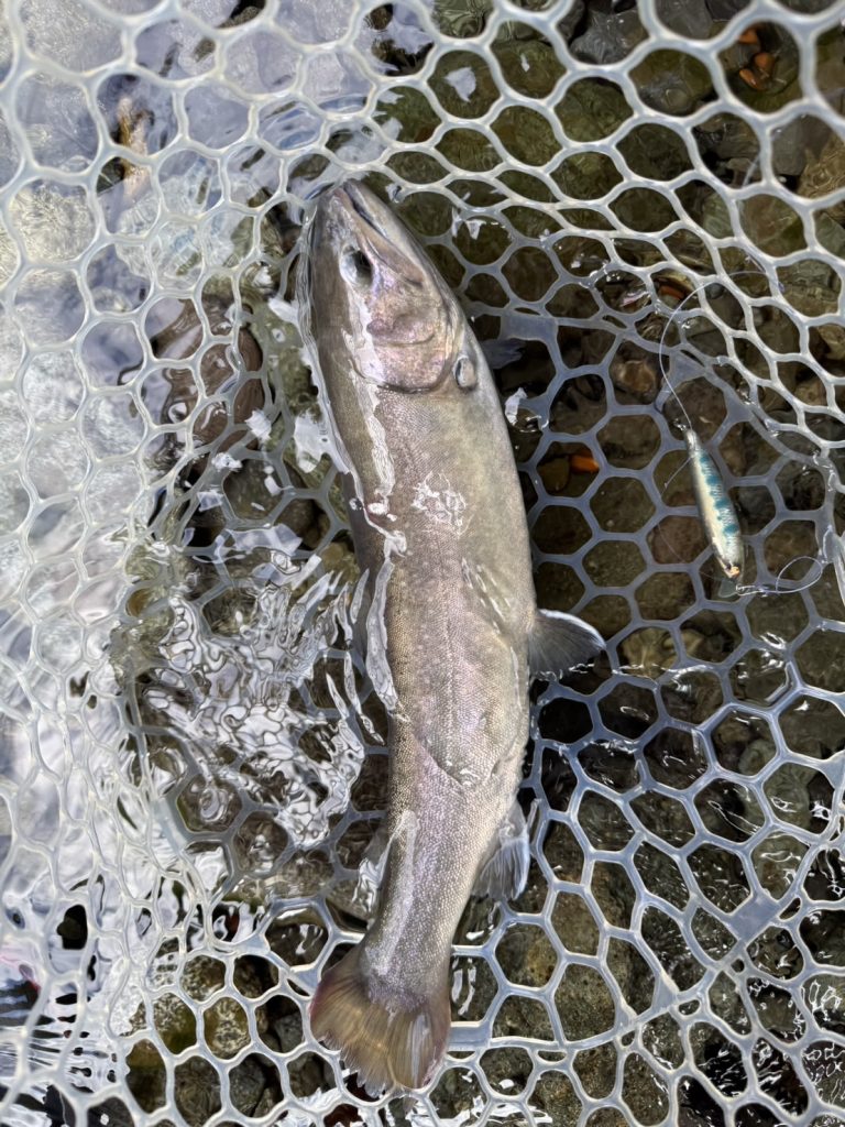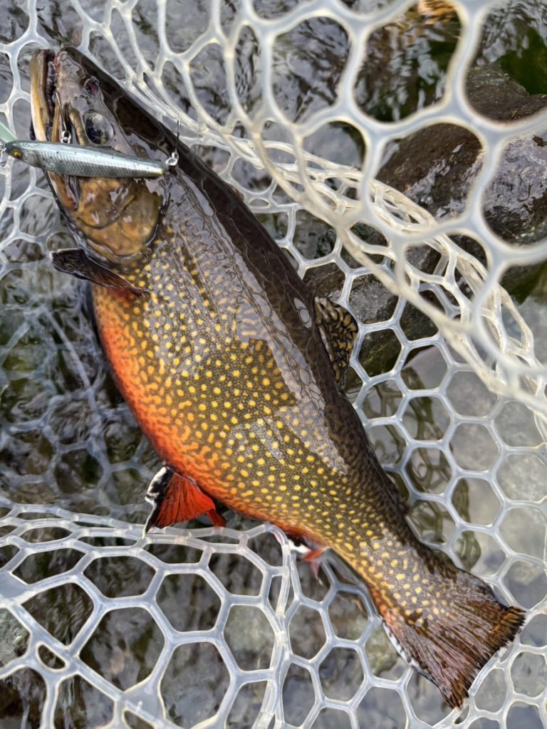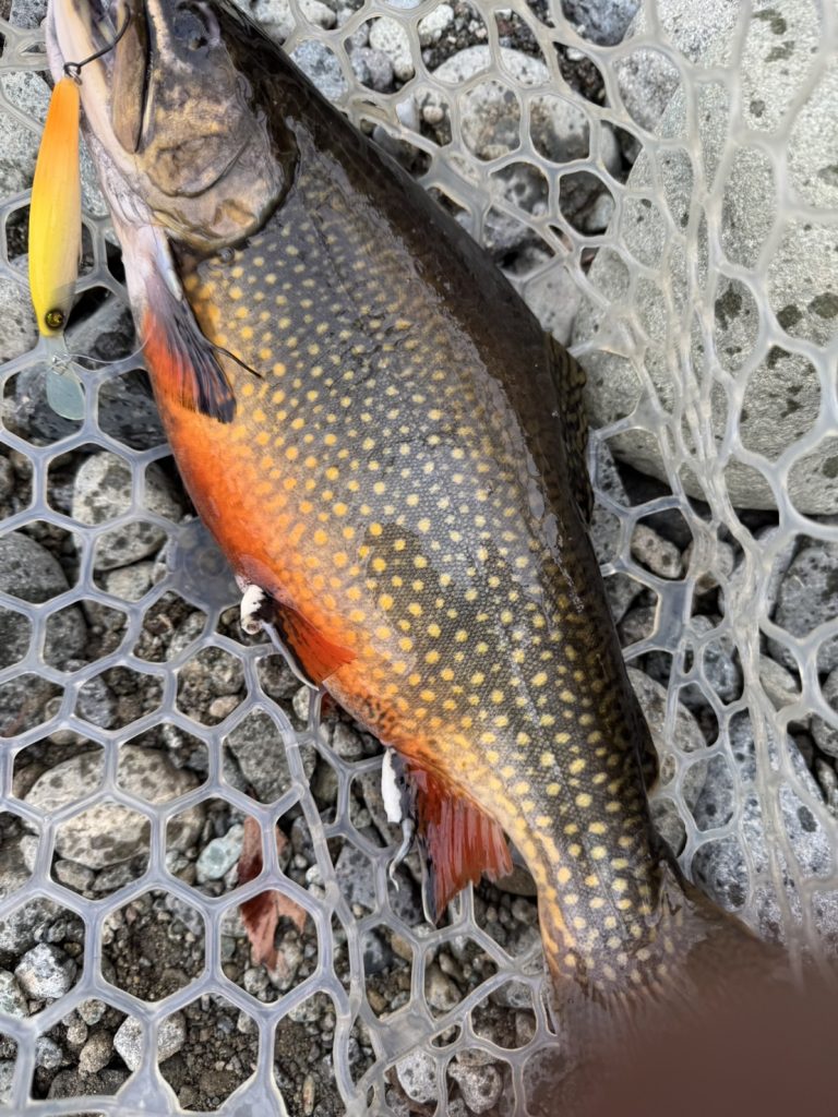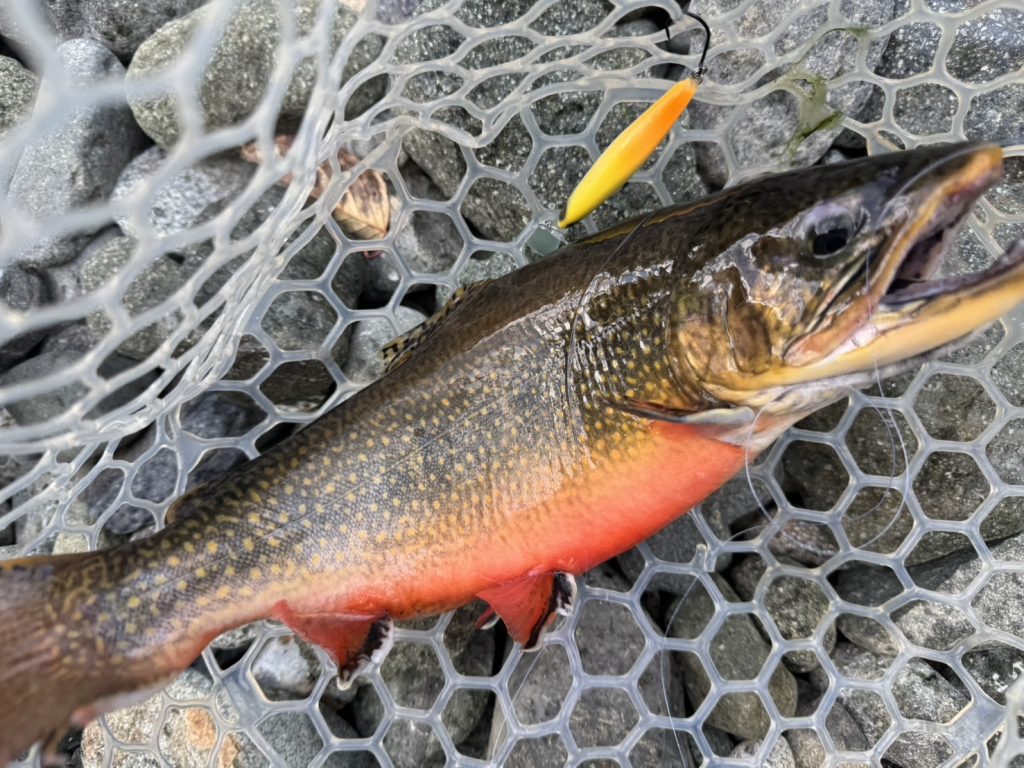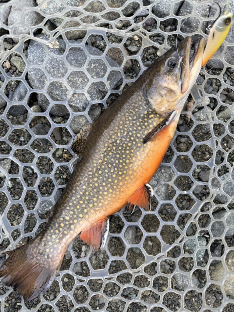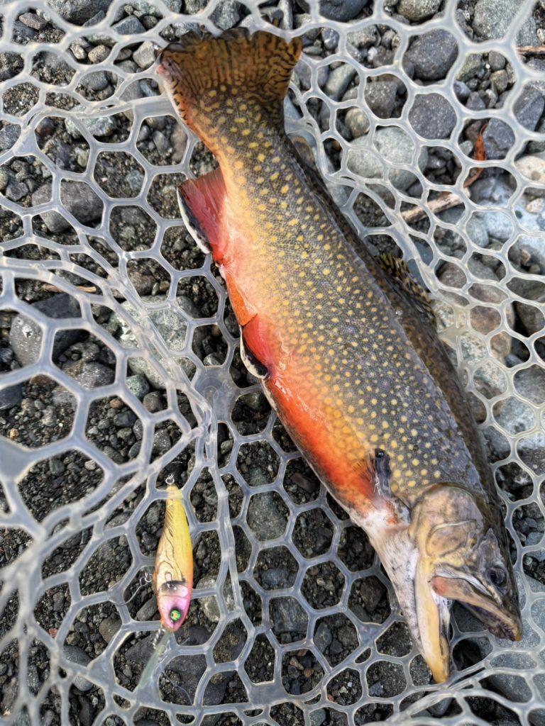 ブルックの反応が良く、陽炎シャッド65DRでよく釣れました。流れ込みの少し深くなっているところにルアーが届く、ボトムを突いてもルアーの動きが乱れないのが良いですね❗️