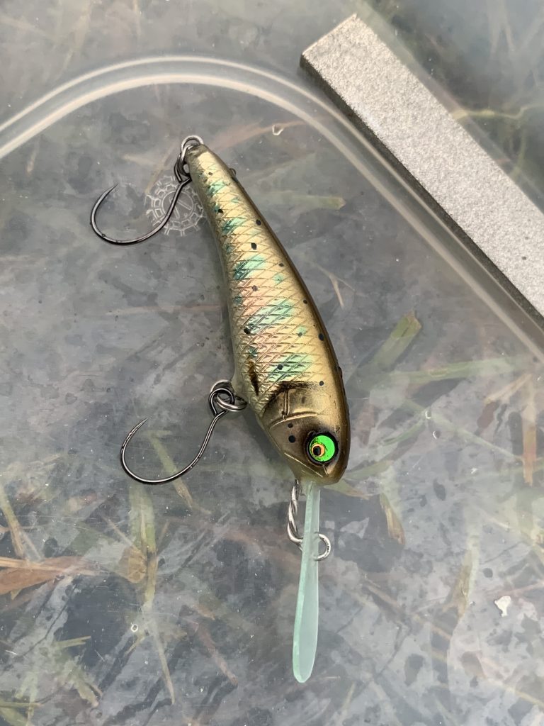 塗装もこうしたらどうかな?をずっと続けています。トラウト系のパーマークの入れ方?色合い?を少し変えています。感覚的な部分ですが、最近また良くなってきたと感じています。で、そうなると今度はそれをバス用ルアーに活かそうとして塗装をします。リアル系カラーは一手間二手間加えると、ガラッと印象が変わります。それが分かるとドンドン進んでいきます。ルアーを作り始めて8年くらいは中々上手く塗装が出来ない時期でした。巷にあるクランクベイトのカラーを真似て、なんとなく仕上がる。少し下手に仕上がる感じでした。当時リアル系も作れなくて、これ以上無理なのかな?なんて思っていた事もありました。それでもやるしかなかったので、続けていたら急に「こうすればいいのか!」と分かる時が来るもので、一つ壁を乗り越えると、乗り越え方が分かるのでどんどん加速します。自分はいわゆる不器用な人で、好きでずっとやっていたら上手く出来るようになったタイプです。絵は描けないし、字も下手です。