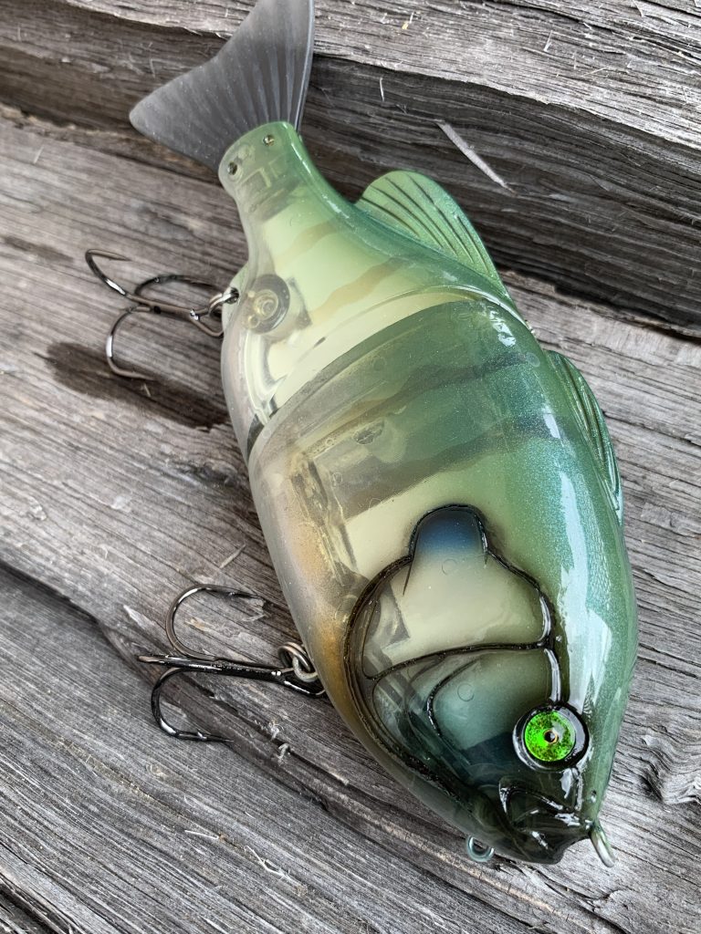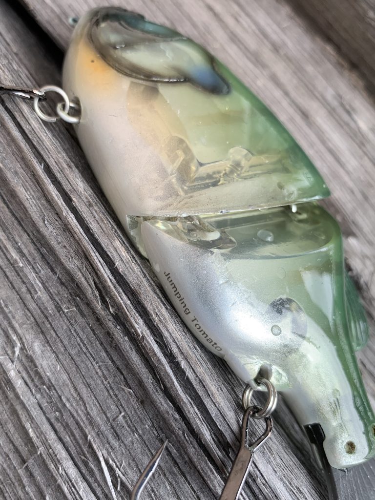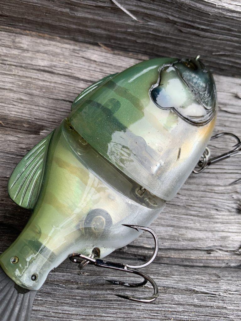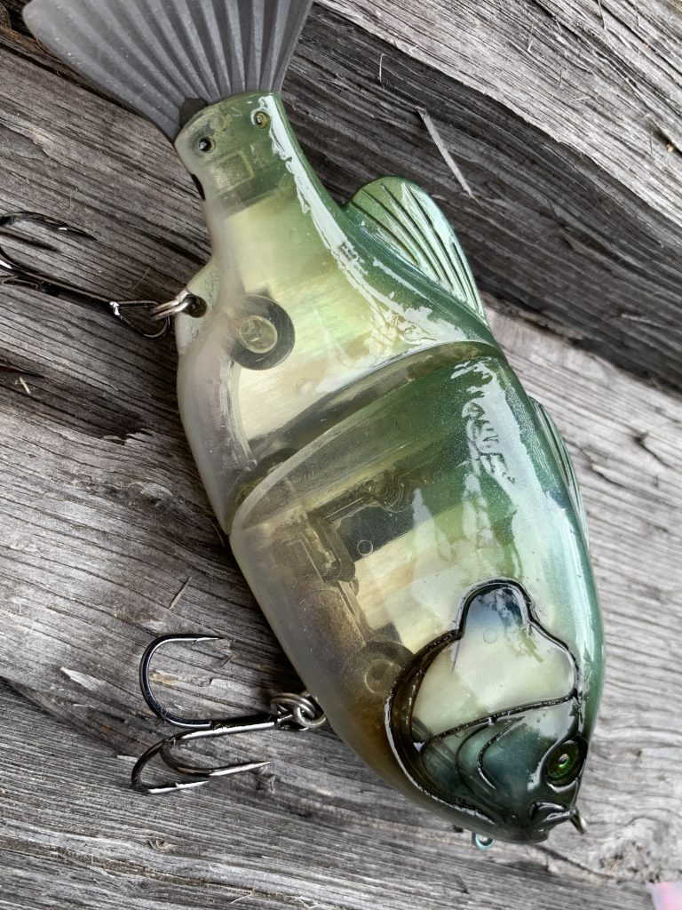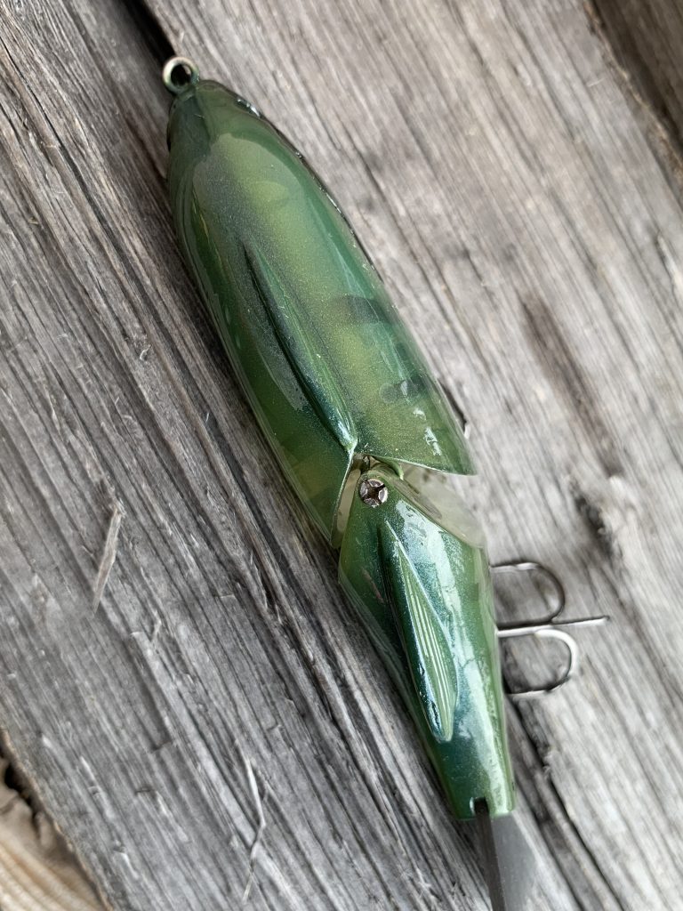 自分はこういったS字系ビックベイトは殆ど使った事がないので、ドキドキしながらスイムテストをしました。無事に仕上がり達成感があったのですが・・・家に帰ると浸水している事に気が付きました。どうやら元々穴が開いていたようで、、、え?気が付かなかった、どうやら連結部分に問題があったそうです。んー、ダメですね。注意というか確認が行き届いていませんでした。洗って乾かして~、と処理すればいいと思うのですが、何だけ燃え尽きてしまって中断しています。相変わらず失敗の繰り返しですね。まぁ自分なんてこんなもんです。自分で使おうかなー?なんて考えてますが、どうしよう。時間が経てば結論が出そうです。反省しつつ、またルアー作りです。