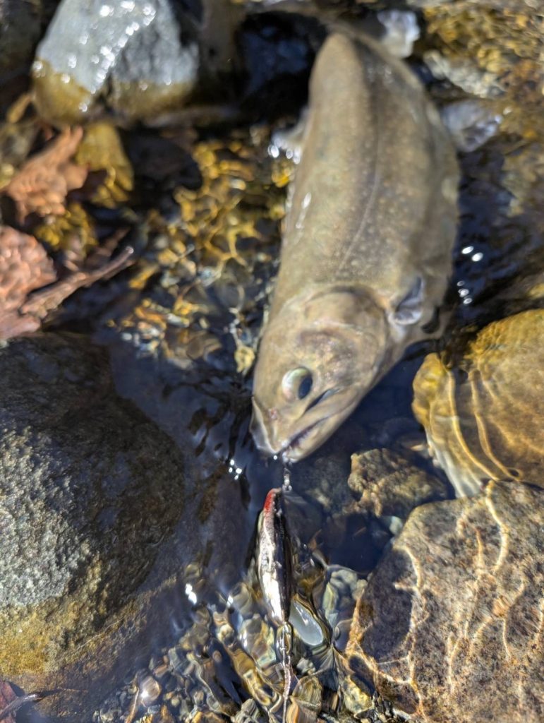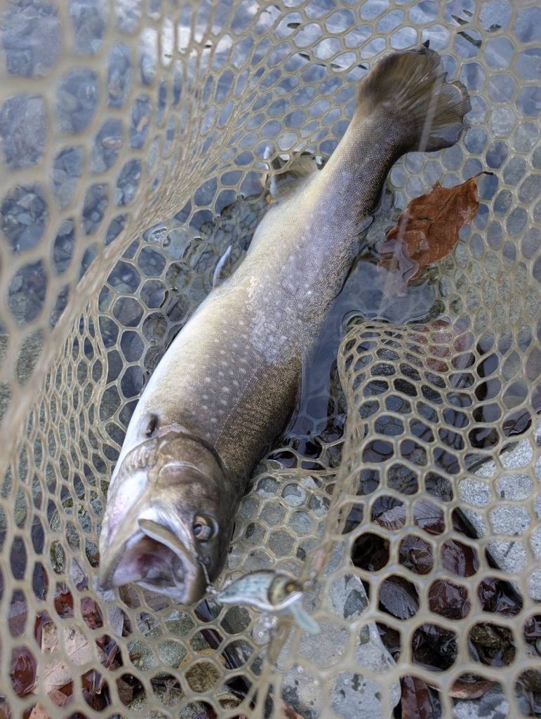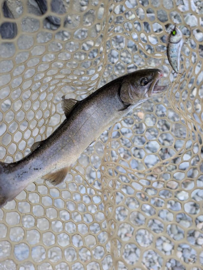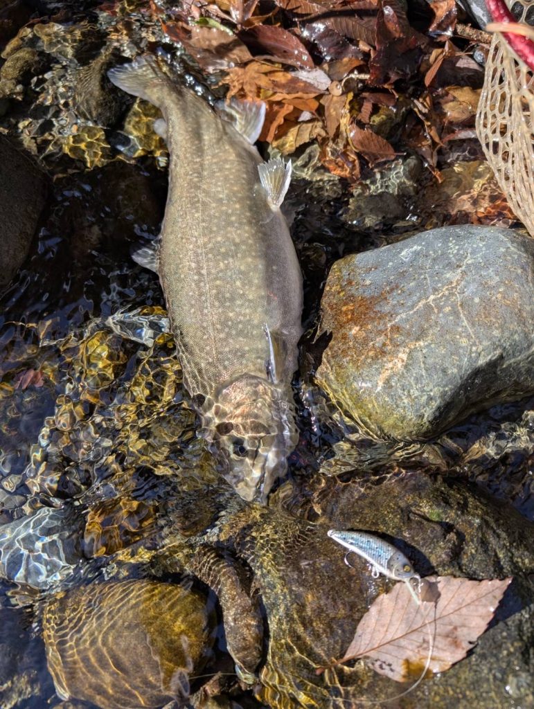先月からイワナが放流されている中で燕60Fが好調でした。ですが今回は反応が薄い中で陽炎フラット45S が良かったそうです。自分が行った時には燕60Fが好調だったので、驚いています。新作の陽炎フラット45Sが直ぐに活躍してくれて嬉しいです。