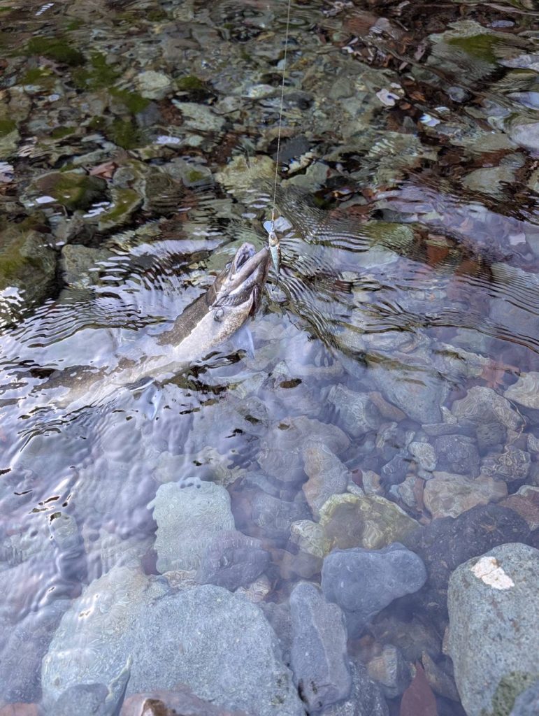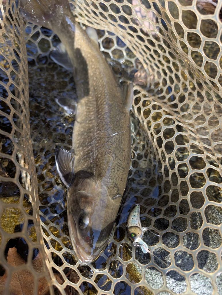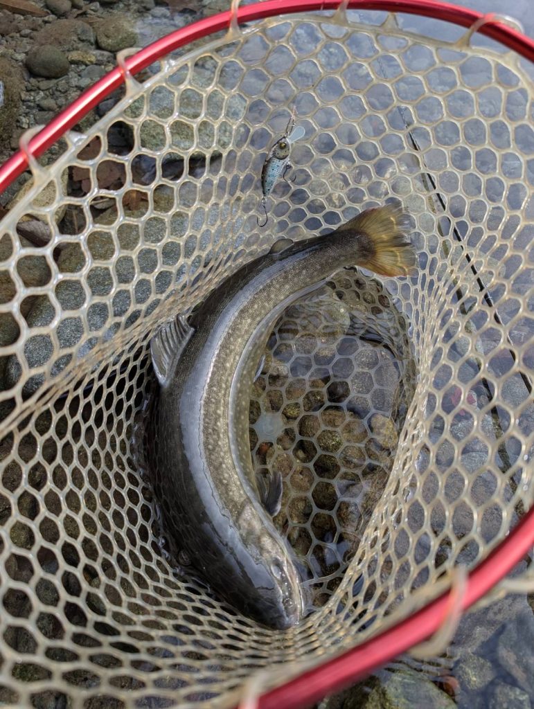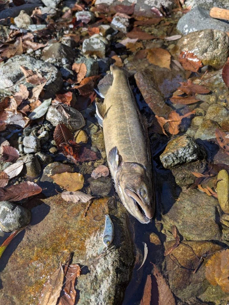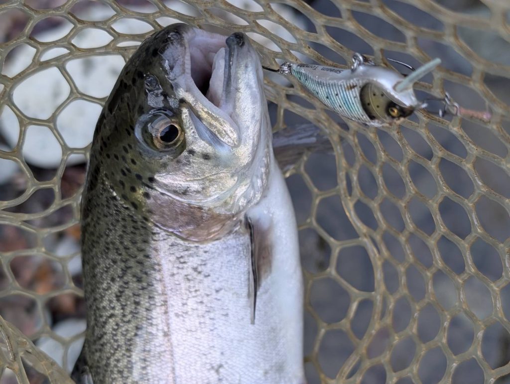 先月からイワナが放流されている中で燕60Fが好調でした。ですが今回は反応が薄い中で陽炎フラット45S が良かったそうです。自分が行った時には燕60Fが好調だったので、驚いています。新作の陽炎フラット45Sが直ぐに活躍してくれて嬉しいです。