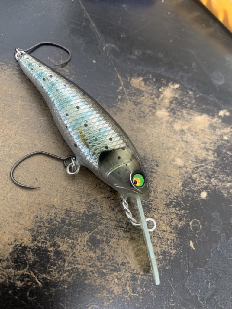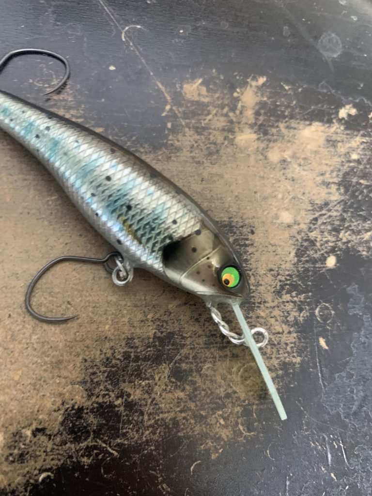 あと爪楊枝で入れている黒いドットが良い雰囲気出るんですよね。最近トラウト用はこればかりです。