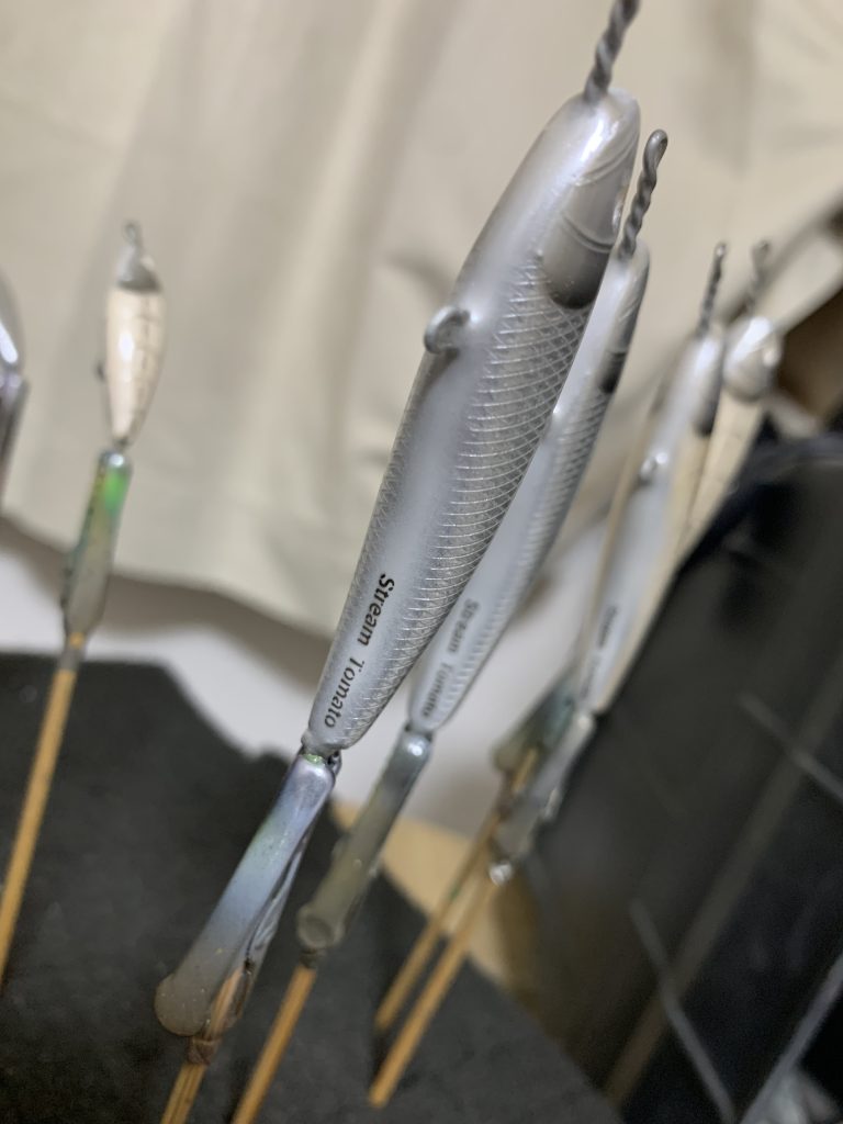 今朝は陽炎シャッド65と燕30Sの塗装をしていました。先日調子の良かった2つのルアー。そういう事があると、何だか作ってしまいます。いつも釣れるとは限らないんですけど、自分の気持ちが高まるんですね。先日の釣行の後には「早く作りたい!!」と思っていました。