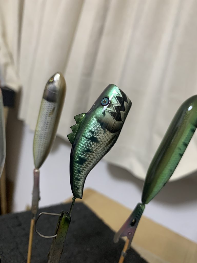 最近思うのは、今後作るルアーは全てブラックトマト仕様で良いのかな?と。昨年のイベントの際にリアル系の顔はどれも似たり寄ったりだというのを聞いて、それがジワジワ頭に浸透してきています。うん・・・確かにそうなんだよな。なので先日ロストしてしまった燕60やお気に入りの陽炎シャッド65をブラックトマト仕様で自分用に作る予定です。
