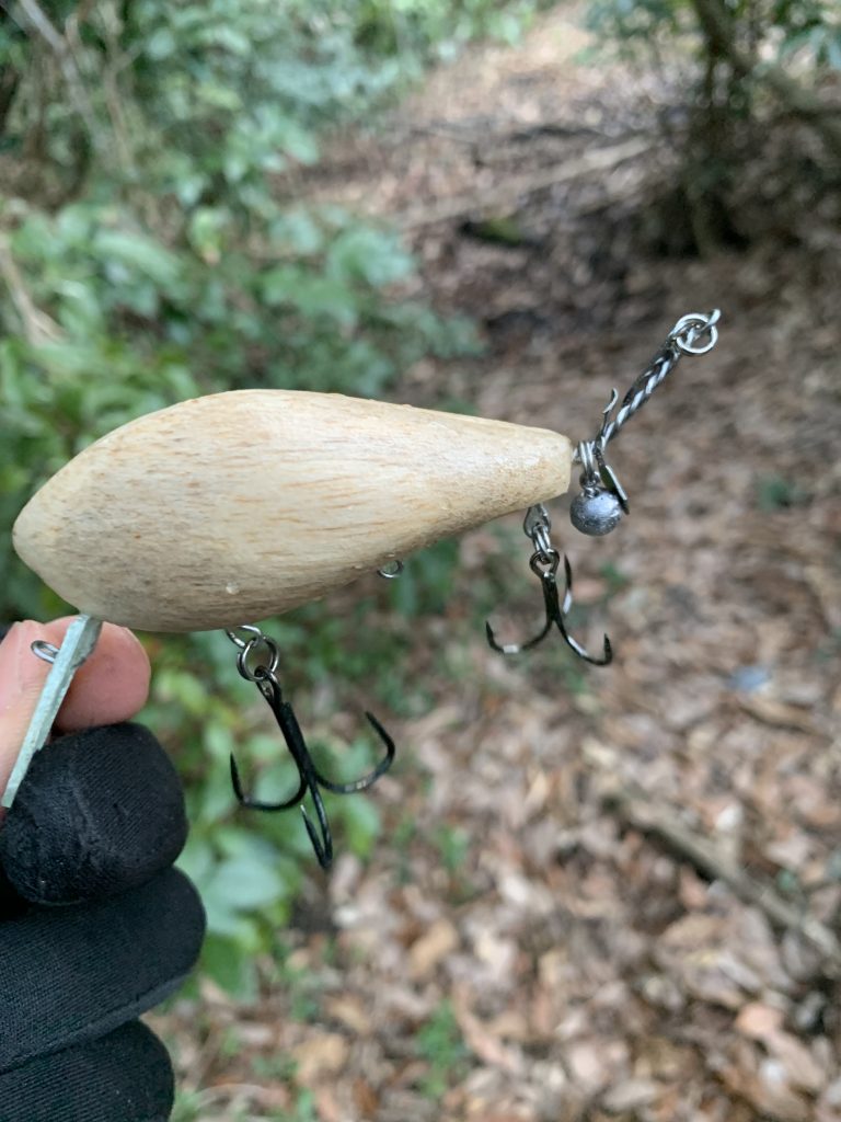 塗装して貝を貼ったものは、最低限のコーティングだけの物よりも少し投げやすく、使いやすい印象。アクションも、ただ巻き・トゥイッチともに良い感じで、納得できる仕上がりでした。